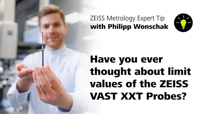 In metrology, there are limits that must be observed. For example, compliance with various limit values for the ZEISS VAST XXT probe extensions are particularly important in order to achieve reliable measurement results. In this video, our expert Philipp Wonschak explains how these limit values are calculated and how to comply with them.