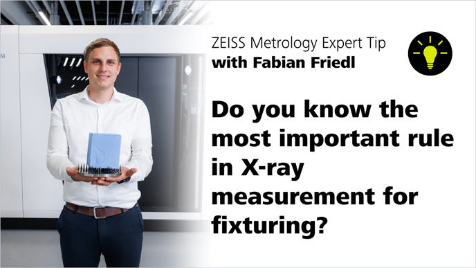 Do you know the most important rule for fixtures when measuring with X-ray systems? If not, then it's time you do! Our expert Fabian Friedl knows the rule and reveals it to you in the latest ZEISS Metrology Expert Tip video.
